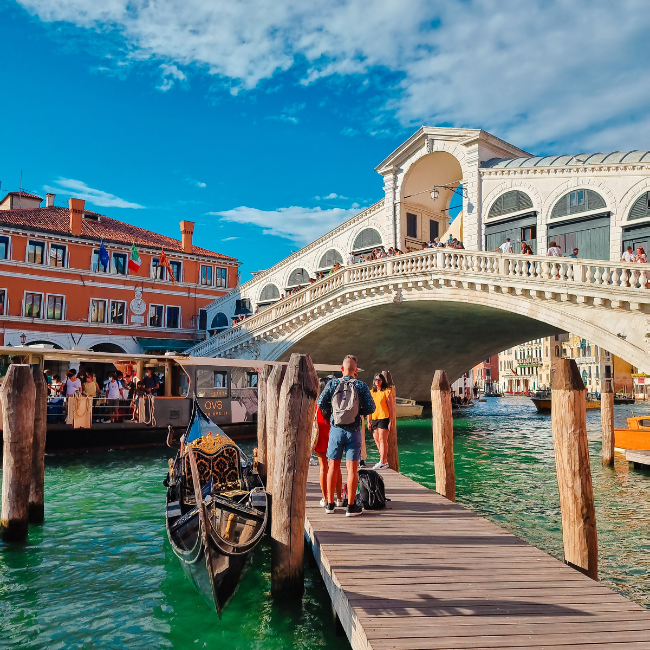 The Rialto Bridge is one of the most famous bridges in Venice, spanning the Grand Canal at its narrowest point. Originally built in the 16th century, this stone bridge features a series of shops along its span and offers stunning views of the canal below. It’s a popular spot for tourists and a prime location for capturing the essence of Venice.